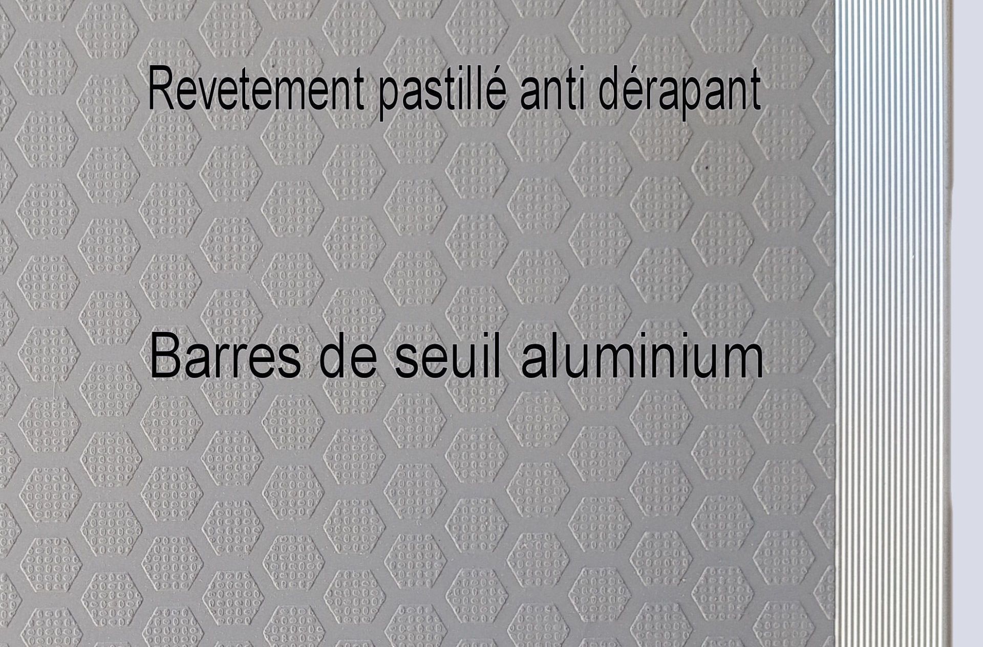 Disponibles en 9 ou 12 mm, marron ou gris avec barres de seuil en aluminium sur les ouvrants